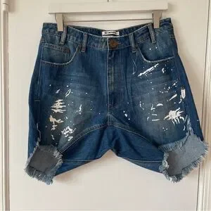 One Teaspoon NWOT Frankies Low-Slung Drop Rise Denim Boyfriend Shorts with white paint splatter 4 (AU 26)