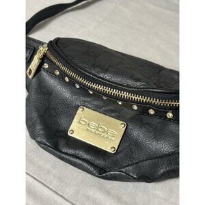 Bebe Fanny Pack Purse With With Bling Faux Leather Black Crossbody Small