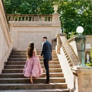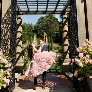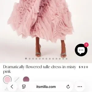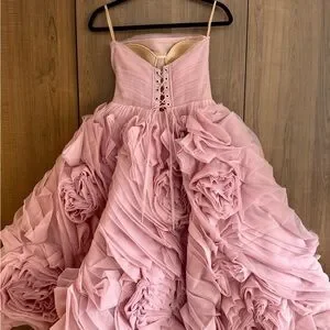 Milla Strapless Dress. Dramatically flowered tulle dress in misty pink.
