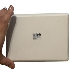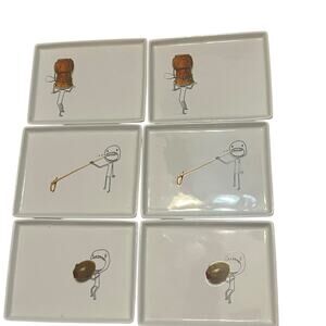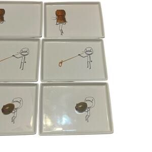 Crate & Barrel CB2 2009 set of 6 Oliver appetizer rectangle ceramic plates Cork, Toothpick and Olive Excellent condition no flaws