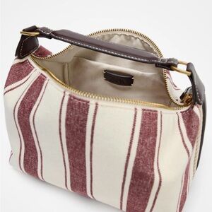 Zara Burgundy and White Striped Handle Bag with brown accents and 2 straps