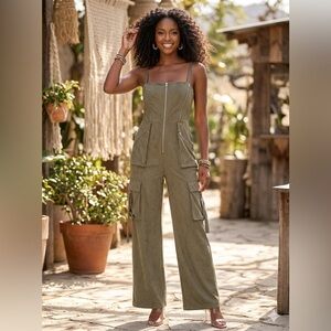 Stylish olive green jumpsuit perfect for any occasion. Features a sleek design with comfortable fit. Ideal for a chic and modern look.