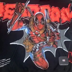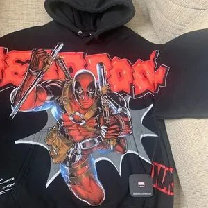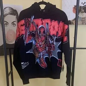 NWT CIVIL REGIME x MARVEL Deadpool Graphic Hoodie in Black, Size Small.