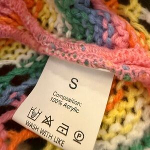 Brighten up your wardrobe with this vibrant multicolor zigzag pattern crochet cardigan. Such a great statement piece and on trend!
