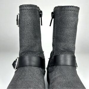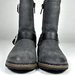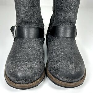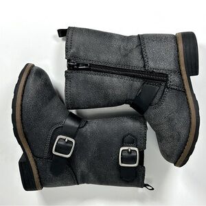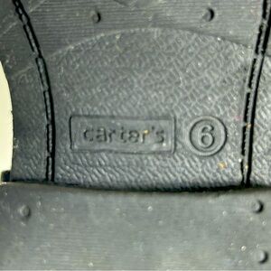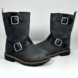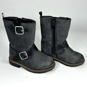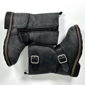 Carter's Finola Toddler Girls' Boots feature manmade uppers & outsole, fabric lining, round toe, zipper closure, a padded footbed, 1-in. heel, elastic side details and harness & buckle accents, size 6T. Boots are gently used in good condition.
