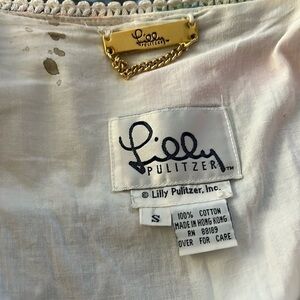 This is a beautiful Lilly Pulitzer Sz S Vintage Patchwork Cardigan Cotton Lined Sweater Jacket. Interior spots as shown. No odors. Minor pulls as shown.