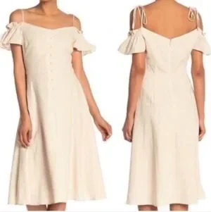 New with tags in excellent condition size 4 GMG Colleen dress cream ecru polka dot. Linen. Fully lined with tie straps.