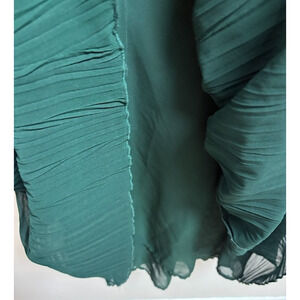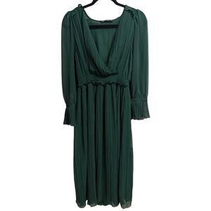 Zara Green Pleated Chiffon Midi Dress Large Smocked Waist V Neck