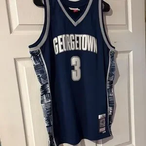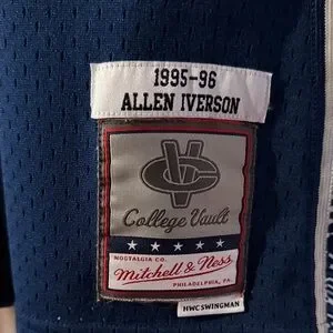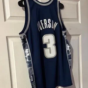 Navy jersey with white and gray details. Features Allen Iverson patch.