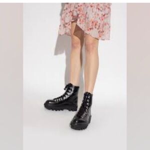 All Saints Wanda Lug Sole Black Leather Combat Boots 40/10