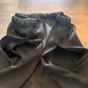 Chic black satin shorts with lace trim. Soft and stylish for a night out