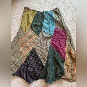 Vintage Y2K Avatar patchwork shimmer midi skirt slight delay if at back of waist. No size tag, fits as small please refer to measurements in photos. Boho cottage