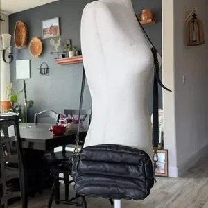 Madewell Transport Puff Black Leather Crossbody Camera Bag