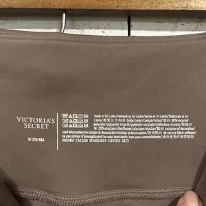 The product is a pair of Victoria's Secret leggings in size 6, designed specifically for women. These brown yoga pants are perfect for active wear, specifically for yoga activities. The leggings feature a compression area for the legs and are adorned with the signature Victoria's Secret character. Made for comfort and performance, these leggings are a stylish and functional addition to any woman's wardrobe for fitness or casual wear.