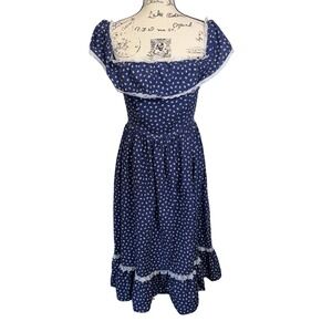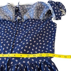 Vintage Berkertex Navy Floral Calico Print Cotton Prairie Lace Ruffle Dress 14