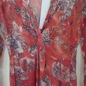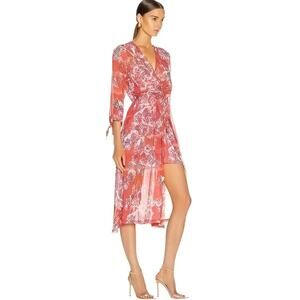 NWT IRO Paris Gramy Printed Midi Dress Red Boho Wrap Effect Size M