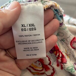 Chic blouse with vibrant floral bohemian pattern. Features a flowing design. Ideal for casual elegance. 100% rayon. Made in india. EUC