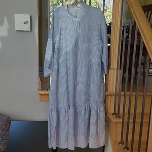 Your summer dress! Chic and comfortable, this striped tiered long sleeve dress is perfect for any occasion. Buttoned all the way down, two pockets! Like new, in perfect condition!