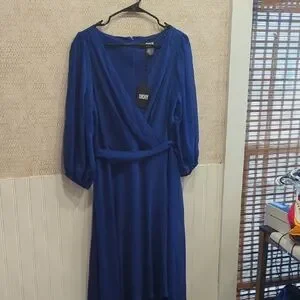 NWT DKNY Royal Blue Midi Dress, LARGE, Wedding Guest, Work, Below Knee