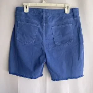 Stylish light blue jean shorts with a frayed hem. Perfect for casual outings.