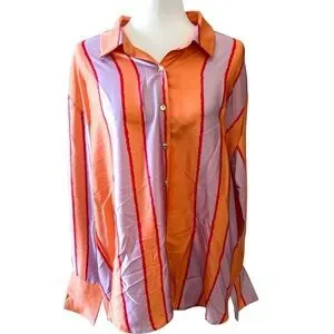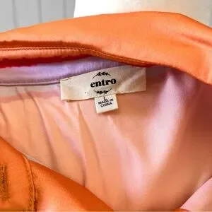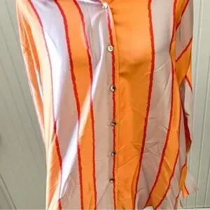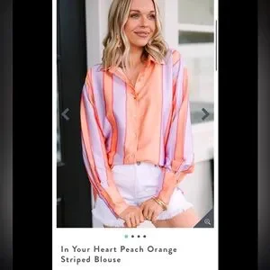 Entro In Your Heart Peach Orange Striped Blouse Silky Satin Top