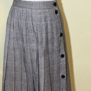 Highland Queen Vintage Pleated Grey Plaid Long Skirt, SZ 6 27" waist