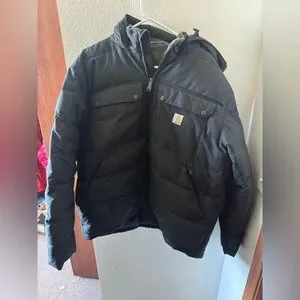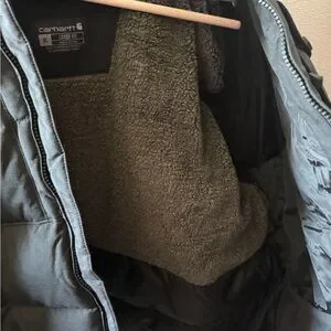 Built for the coldest days on the job, this men's Carhartt insulated jacket blocks the wind, sheds damp conditions, and warms your core with a combination of sherpa fleece and synthetic down insulation. Pockets inside and out offer plenty of storage. A loose fit allows for easy layering and movement.