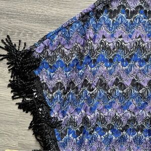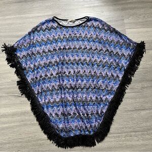 Blue & purple fringe crochet poncho.