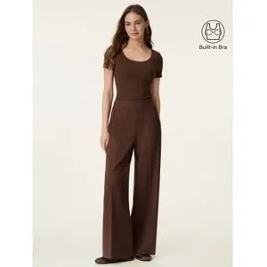 Elevate your everyday essentials with this OGL ribbed short sleeve top, designed with a flattering sculpting fit and a convenient built-in bra for comfortable, supportive wear.