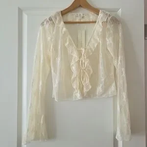Lace Ruffle Tiefront Blouse Western Chic Romantic Fairy Core Thirty Thirty S NWT