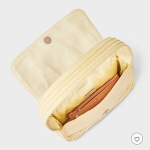 Elegant cream handbag with floral embellishments. Perfect for adding a touch of sophistication to any outfit.