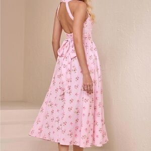 Chic Backless Pink Floral Dress