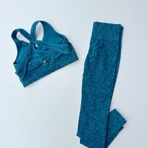 Gymshark Teal Leopard Print Sports Bra and Leggings Set