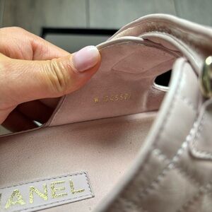 Chanel light pink shiny calfskin quilted dad crystal slide sandals size 40