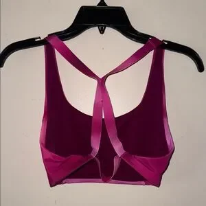 Stylish pink sports bra with crossback straps. Perfect for workouts. Comfortable and supportive. No padding.
