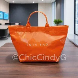 Simple, modern large orange tote bag with a glossy finish and structured shape. Lightweight but sturdy, with comfortable double handles and a roomy interior for daily essentials. Easy, practical, and polished for everyday use, shopping, or travel.