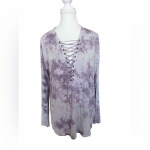 American Eagle Soft & Sexy Lace Up Tie Dye Tunic Top Purple L