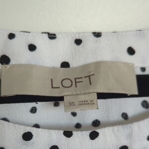 Chic and stylish, this LOFT top features a classic white and playful black polka dot pattern. Perfect for any occasion.