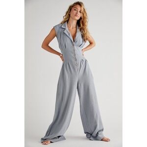 Free People Shasta One-Piece Autumn Sky Wide Leg Jumpsuit Cutout Back L Coastal