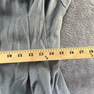 Free People Beach wide leg jumpsuit in soft textured blue cotton rib. Sleeveless design with a notched lapel collar and button front with natural tone buttons. Back features a cutout detail and elasticized waist for a flattering fit. Flowy wide legs give it that relaxed coastal vibe.