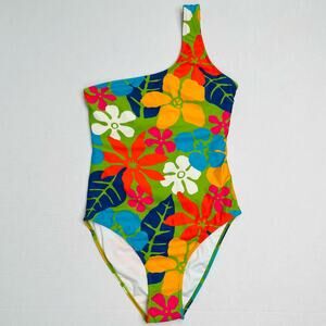 Faithfull the Brand Aurea One Shoulder One Piece Swimsuit Retro Floral NWT S