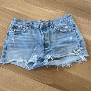 Agolde Light Blue Distressed Jean Shorts