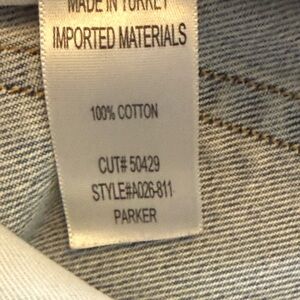 Trendy distressed jean shorts with frayed hem. Light blue wash. Perfect for casual wear.