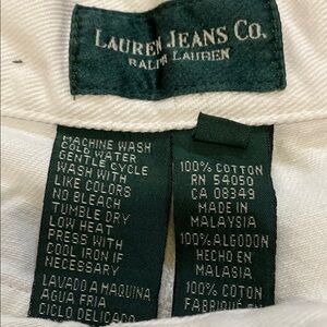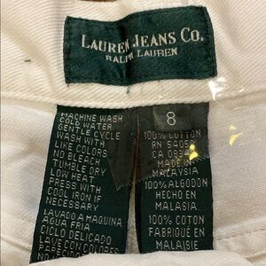 Lauren Jeans Co. These Ralph Lauren jeans feature a classic straight leg design in a crisp white color, offering a timeless and versatile look. Crafted with a high-waisted fit, they provide both comfort and style for any occasion. The subtle texture of the fabric adds a touch of sophistication to these elegant jeans. 100% Cotton. There is an ink line and a couple other tiny spots-see last 3 photos -barely noticeable Otherwise great Condition
