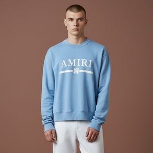 Elevate your streetwear collection with this AMIRI light blue logo crewneck sweatshirt. Known for its premium craftsmanship and luxury edge, AMIRI pieces blend high-end fashion with modern street style.
