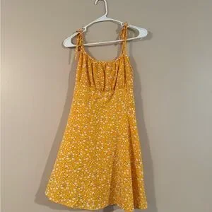Mustard dress with delicate white flowers. Ideal for warm weather. Like new.