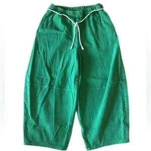 Features: Elastic waistband for pull-on ease, drawcord detail at the waist, side pockets, soft cotton fabrication