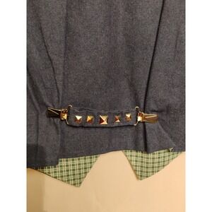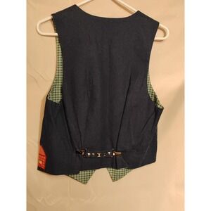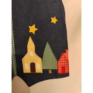 I have this beautiful handmade women's vest for sale. This is a Women's size MEDIUM. It is dark wash blue lightweight denim with a plaid interior. It has a nighttime moon and stars town theme on it. It comes with the added removable clipped back strap to adjust the back. It is a very nice piece to add to any wardrobe.