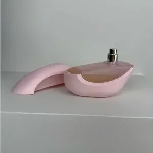 Elegant perfume bottle by Ariana Grande. Soft pink hue with a smooth design.
