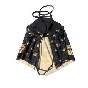 Classic women's Tankini top featuring a dark base with floral and paisley patterns.